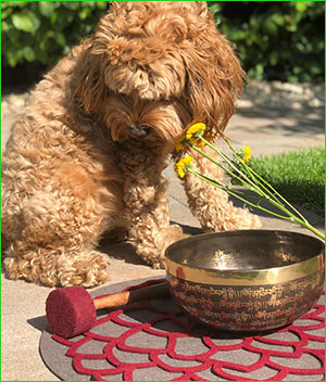 Auf Wunsch kann die Klangmassage auch zusammen mit Ihrem Hund durchgeführt werden.